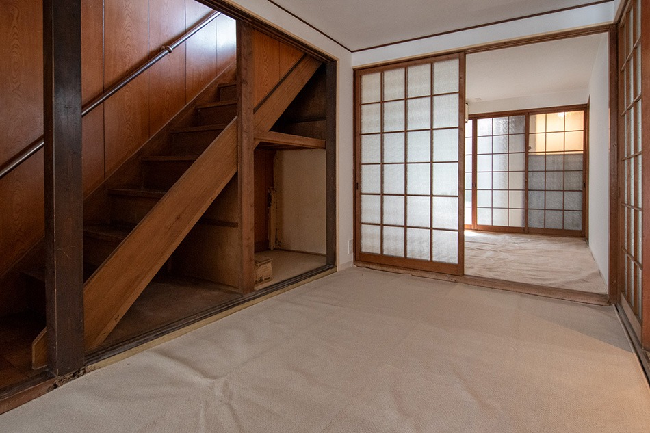 1階は、町家ならではの 表から奥へと視線が抜ける 一列三室の様式を活かし、 扉をとっぱらって どどーんと広々とした 空間にすれば開放感抜群です。