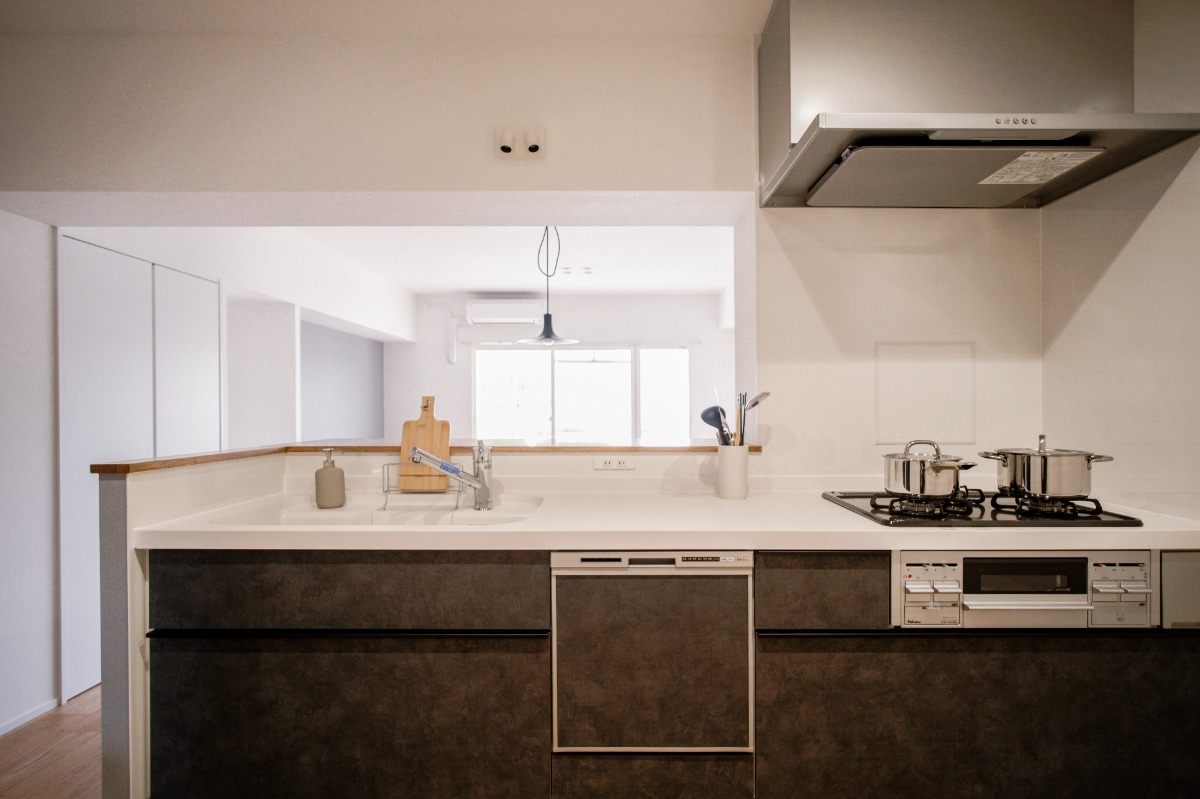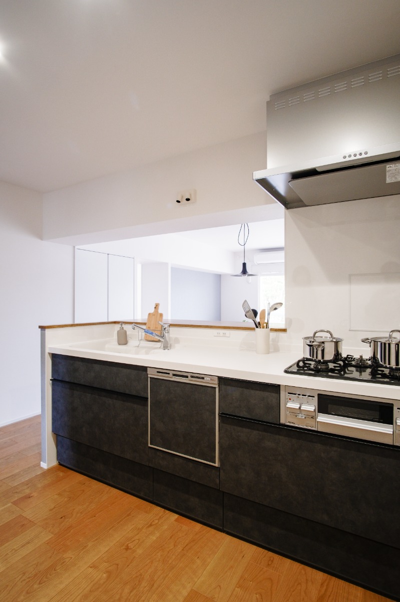 リビングダイニングからキッチンへ。