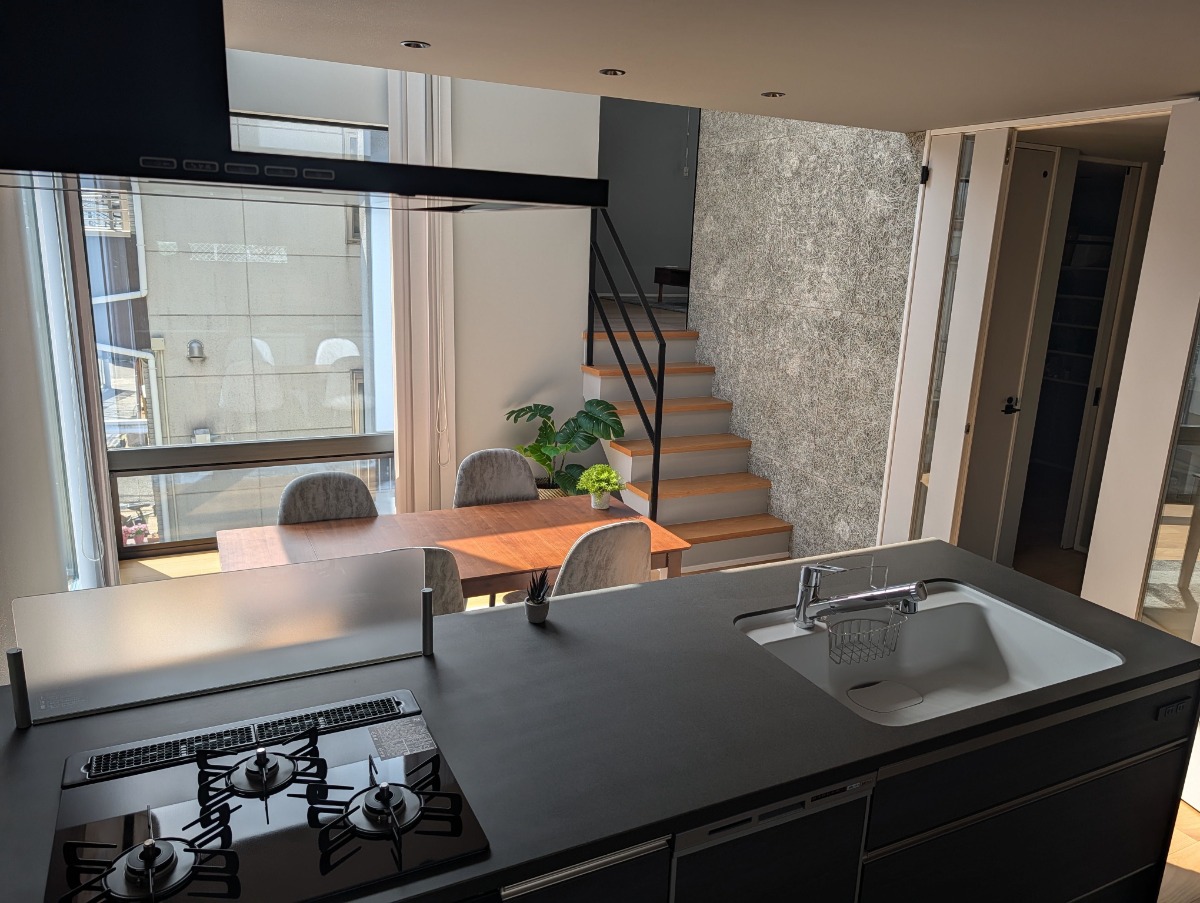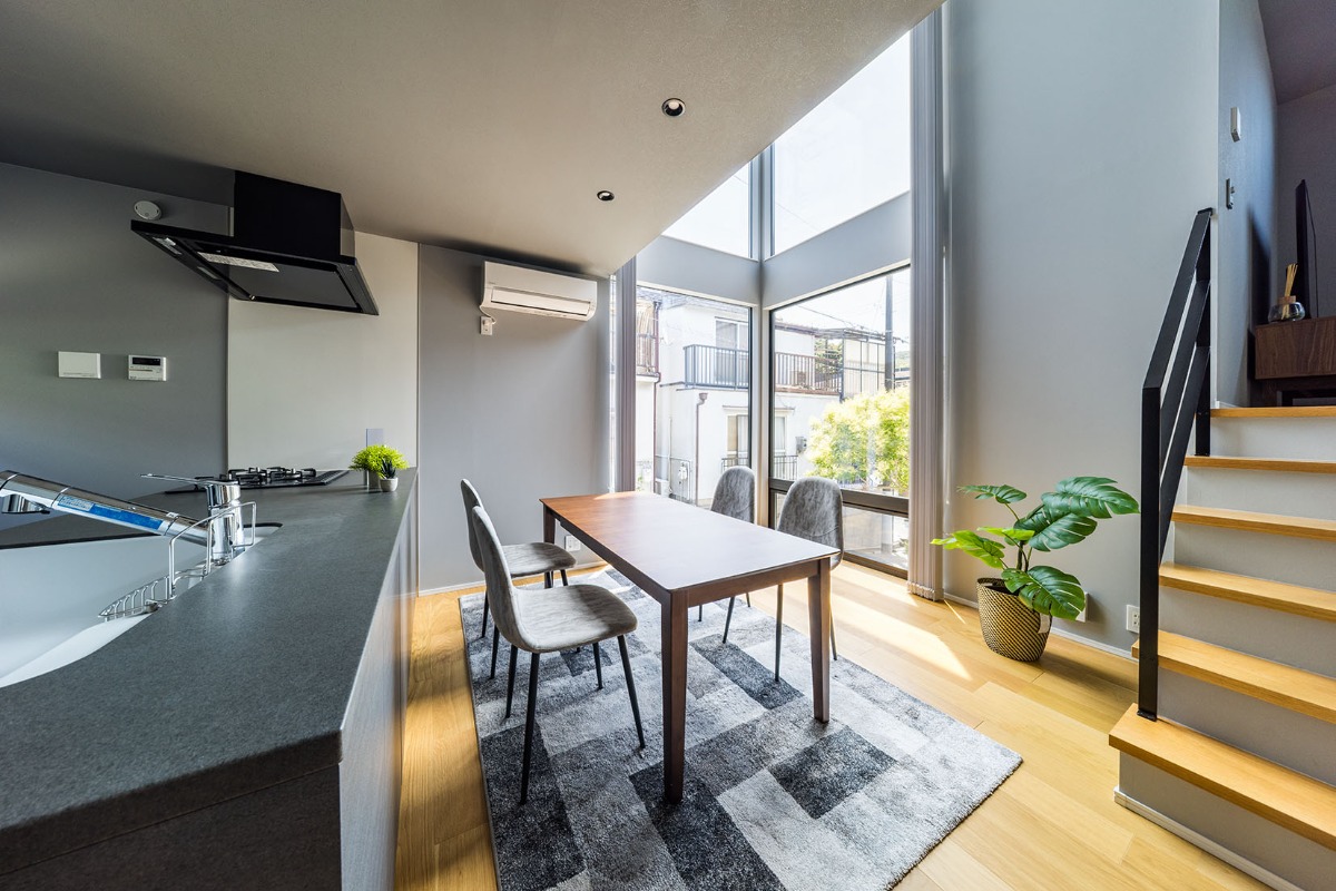 吹き抜けにスキップフロア、 それらを際立たせる窓づかい。(兵庫県神戸市85㎡の賃貸物件)