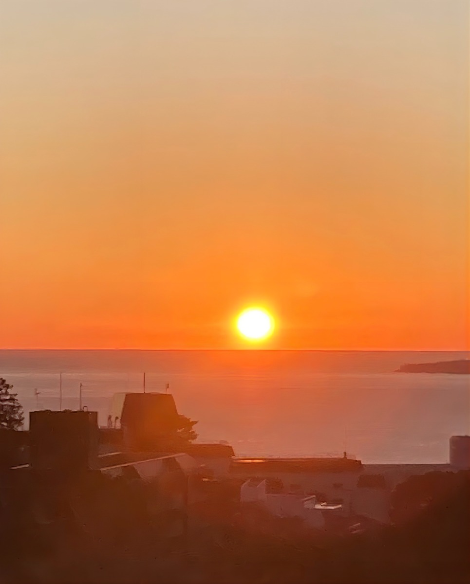リビングの窓いっぱいに、山と海と空が広がります。