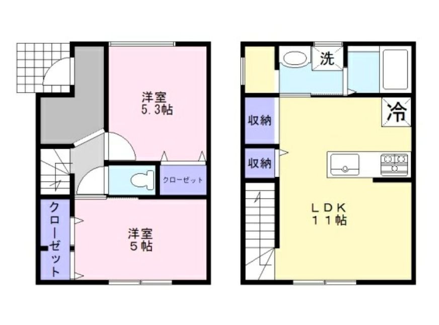 1階に洋室が2部屋、