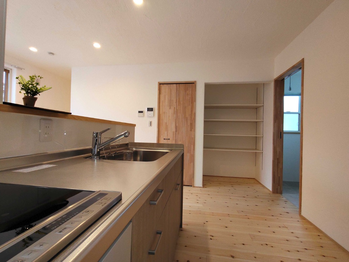 LDKの一角には収納スペースを備え、