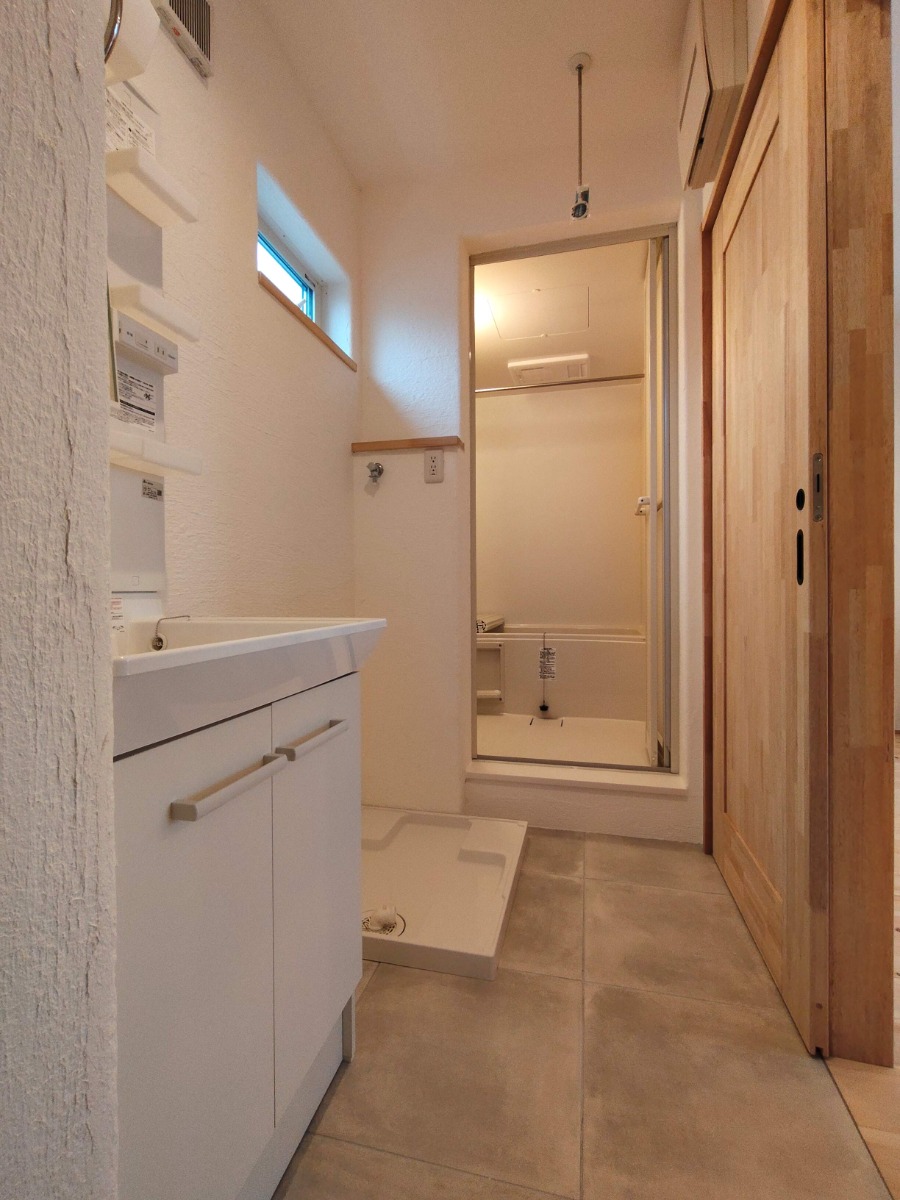 洗面スペースと浴室は2階に。