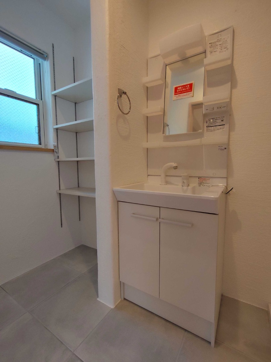 洗面台の奥には、