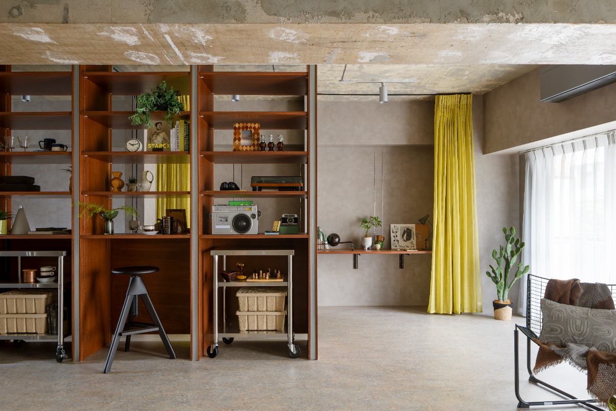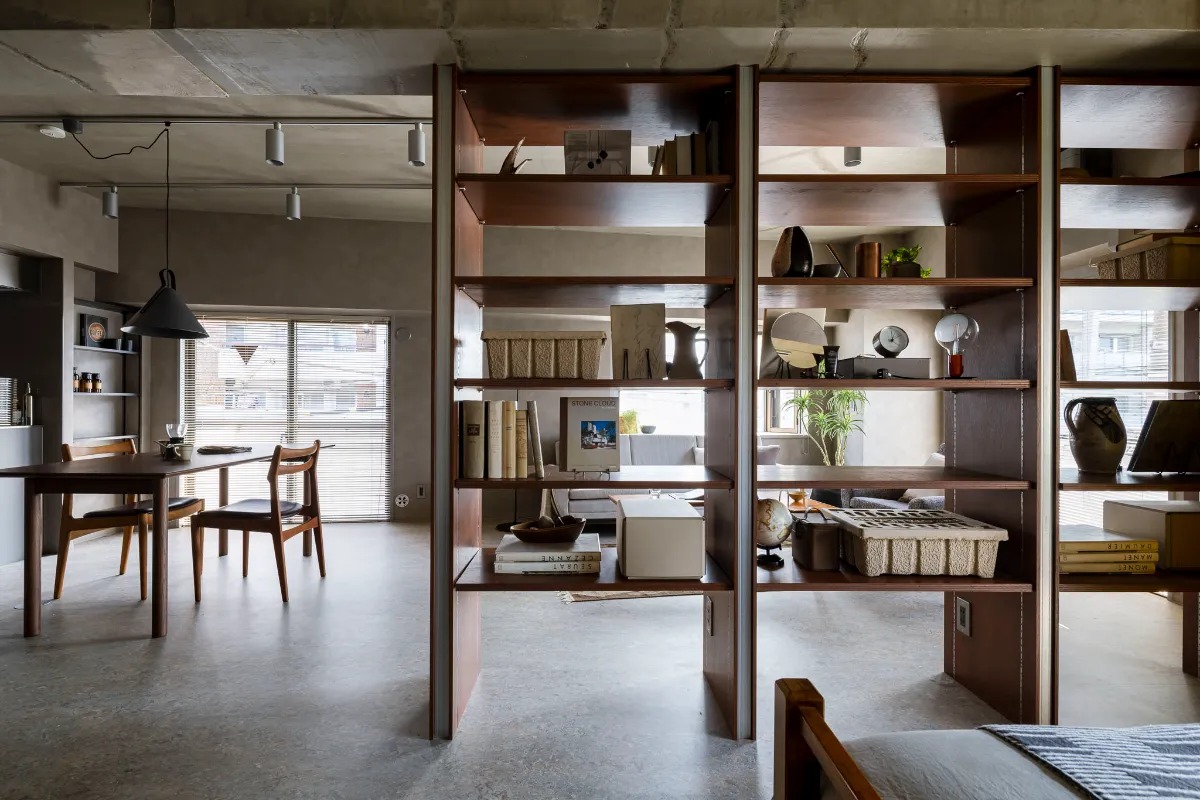 中央に置かれた大きな棚によって、