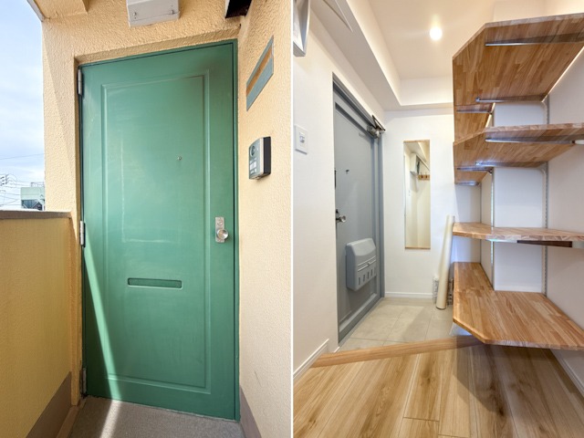 玄関ドアもバルコニーの色とおそろい。