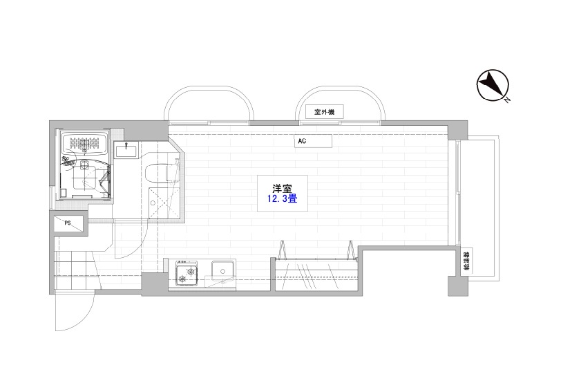 スラリと広い12.3帖のワンルーム。