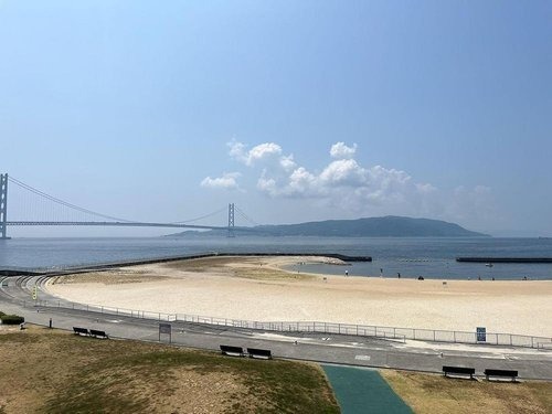 橋の光と夜の海を眺めながら、ビールを一杯。