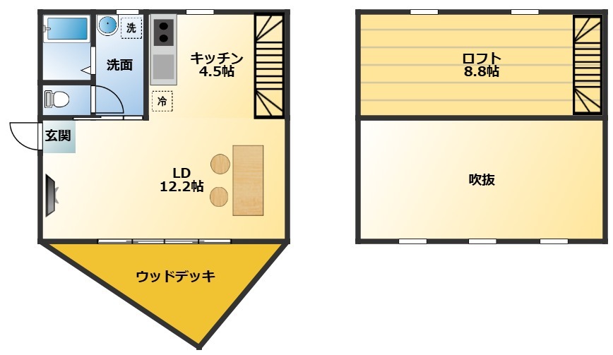 間取りは、1階にLDKと水まわり、