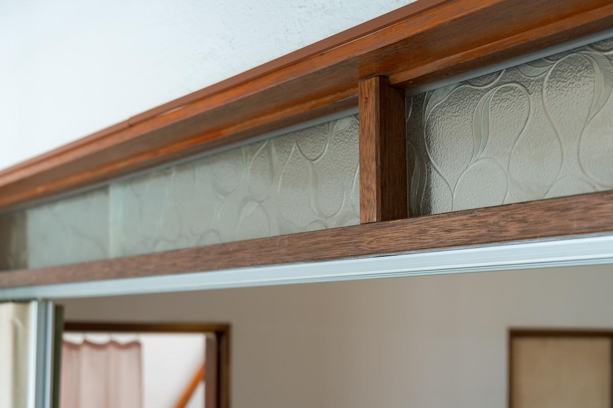 ガラスの引き戸の鴨居もぜひ見てほしい。
