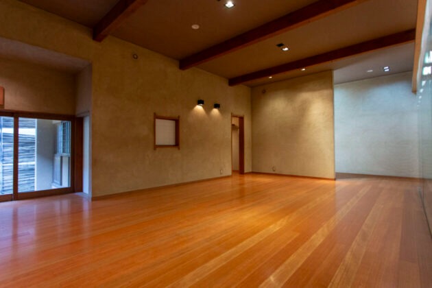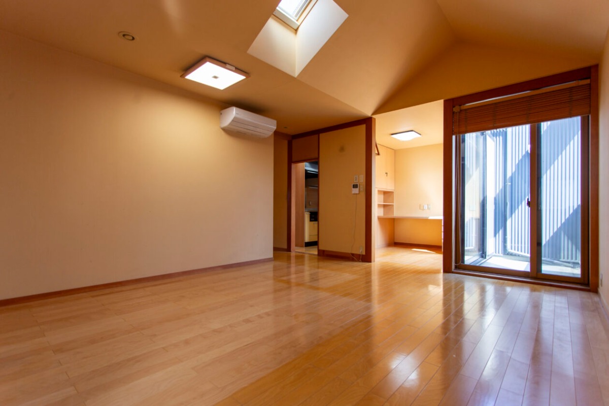 フローリングの床、天井の梁、