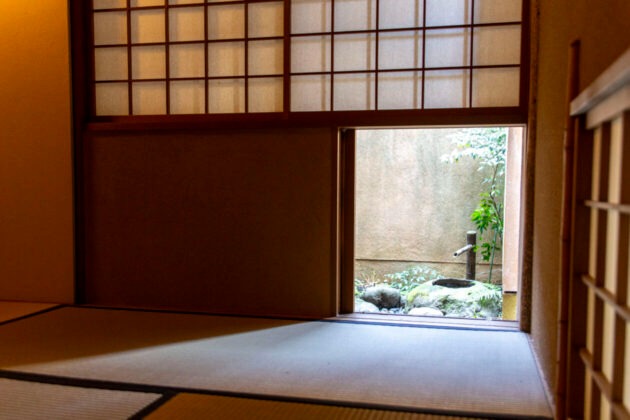 和室から小さな開口越しに見える