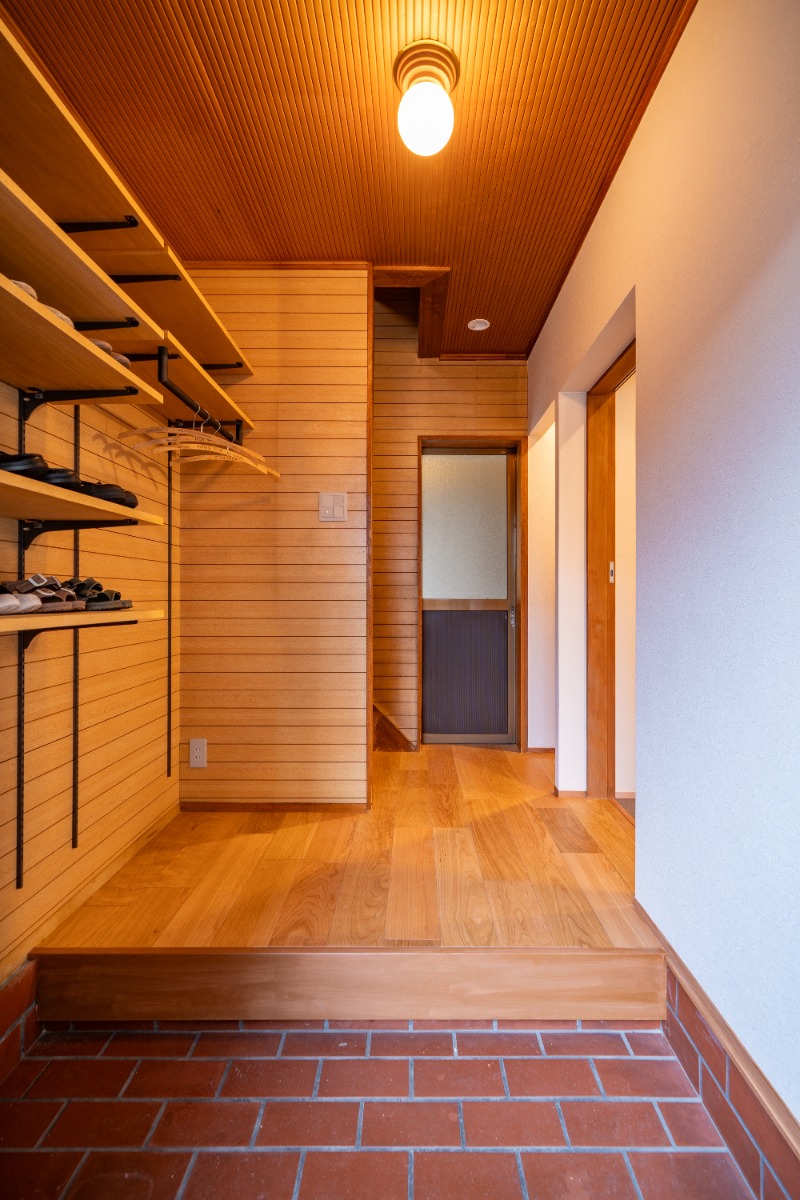 玄関から続く壁は、壁紙仕上げではなく