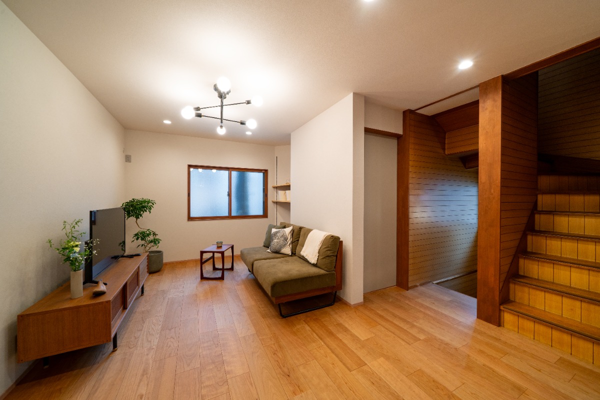 左側の階段を上がるとリビング。