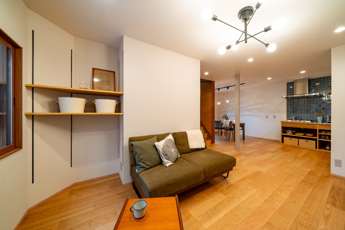 木製の造作棚と、センスよく