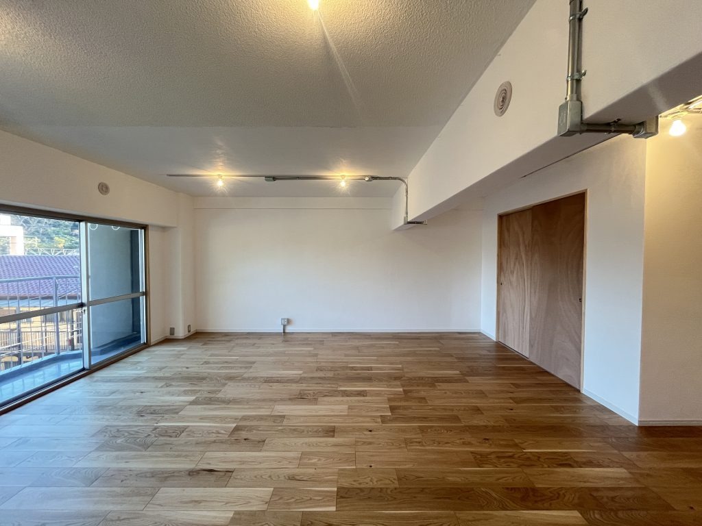 家具の配置がしやすく、 ゾーニングしても使える形です。 洋室の使い方によっては、 LDKの一角をベッドスペースにするのもあり。